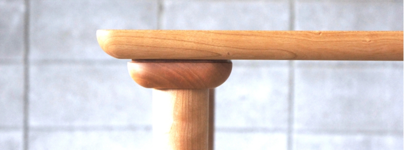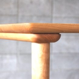 天板下には大きな柔らかい面取りを施し、脚は丸脚にしたにも関わらず、シャープなフォルムを実現しています。