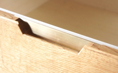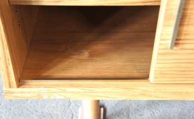 本体、引き戸、引き出し、脚部と繊細な面取りを丁寧にしています。