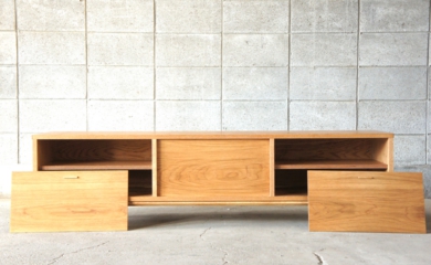左右の引き戸の中にオーディオ類を設置し、使用する時は引き戸を開けます。