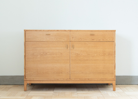 扉や引き出し前板とキャビネット本体との納まりがポイントなキャビネットです。