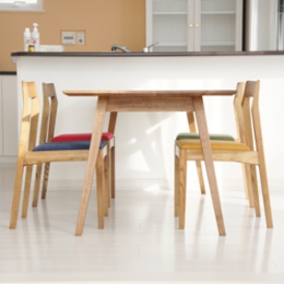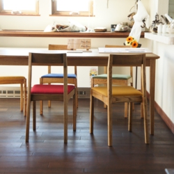 座のファブリックカラーは全69色(標準色13色、その他特別色は特色料がかかります。)あるので、ダイニングセット全て色を変える方が多いです。この色はお父さん、これはお母さん、という具合にご家族で楽しみながらお選び頂けます。