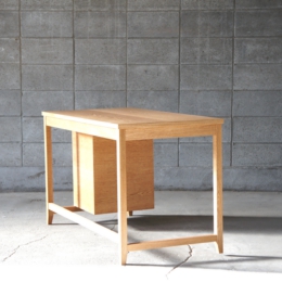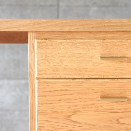 軽快さと、チェアに座ったときのご自分の脚の空間を広く取るために、あえて天板の下に引き出しを付けていません。