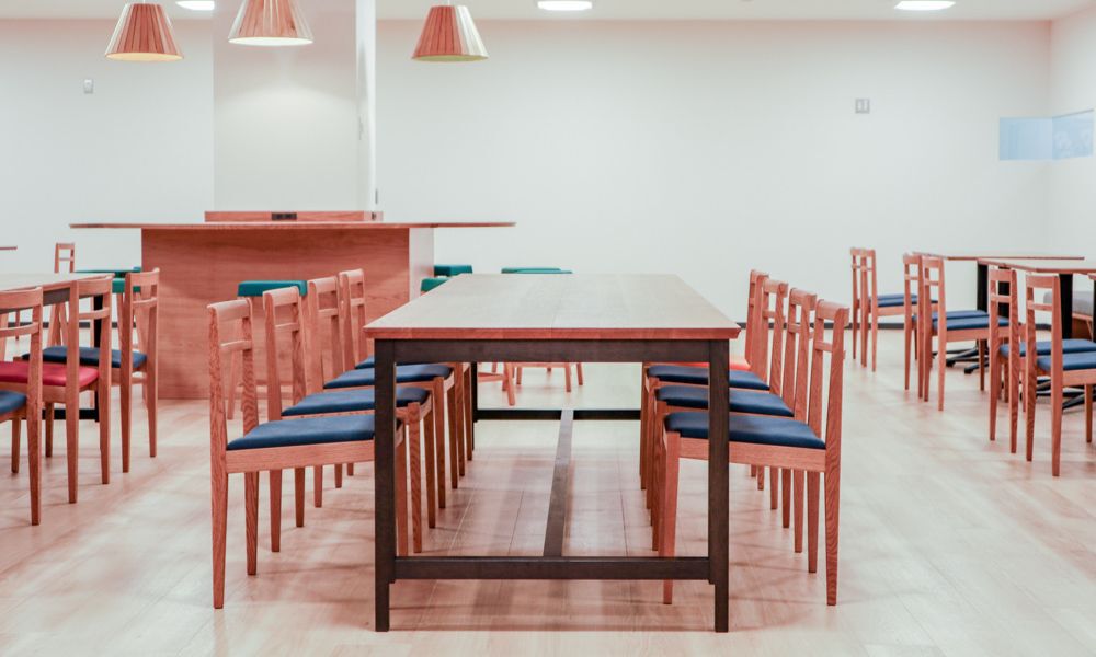 線の要素が減り、同じ椅子を大量に納めた際により軽快な印象を与えます。