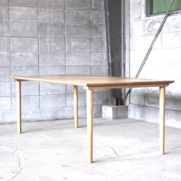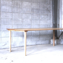 天板の長さ方向の端部の幕板に脚を固定するのみという、非常に軽快な印象のテーブルです。
